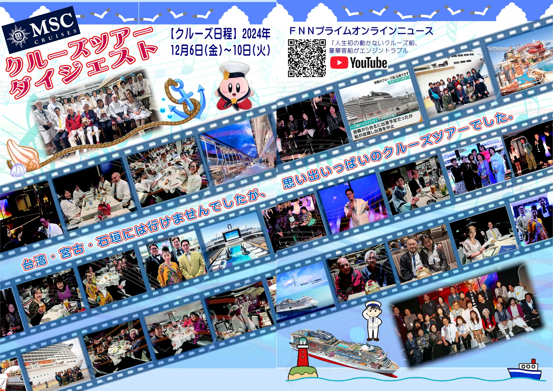 エンジントラブルでクルーズ船は動かず、台湾・宮古・石垣には行けませんでしたが、思い出いっぱいのクルーズツアーでした。